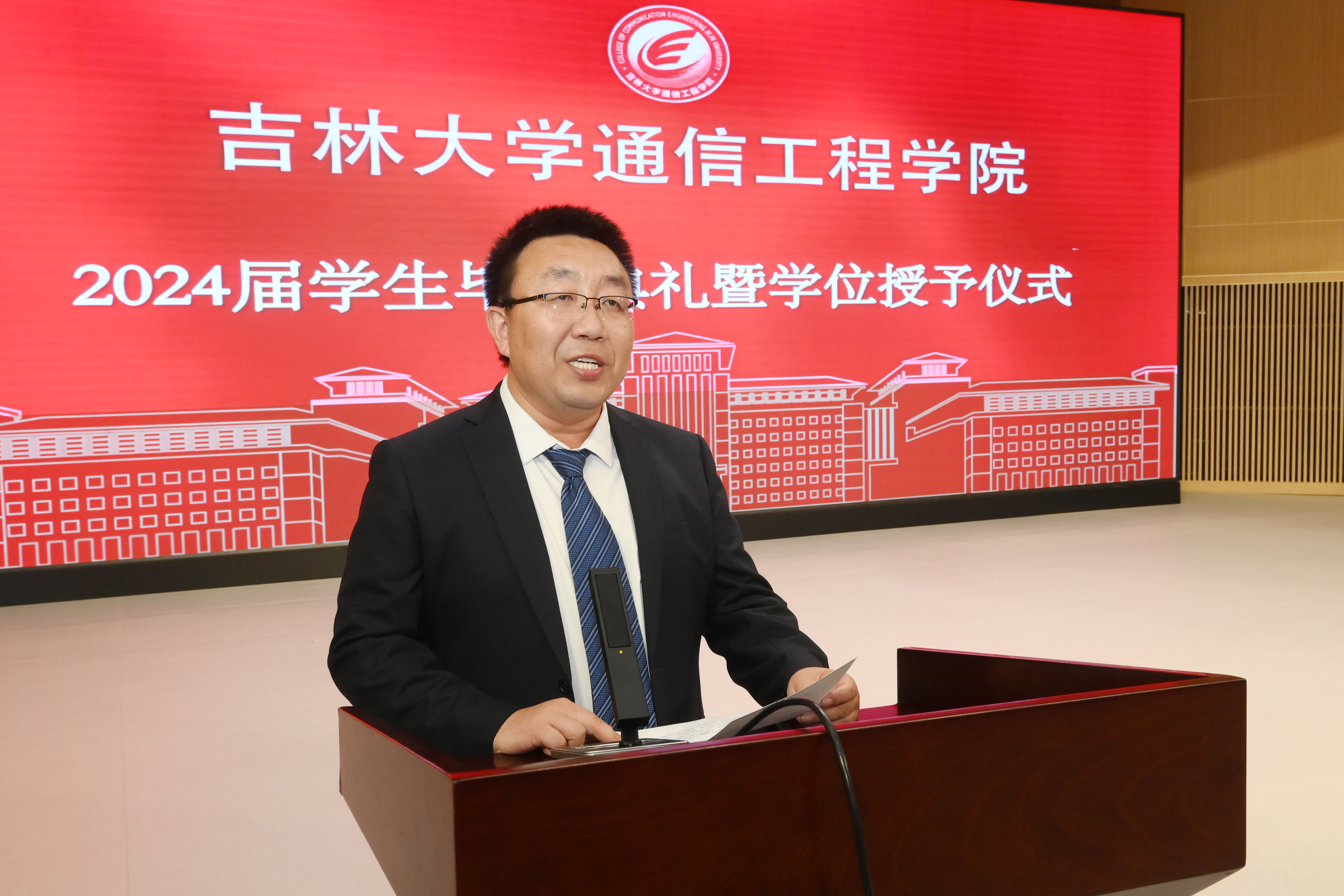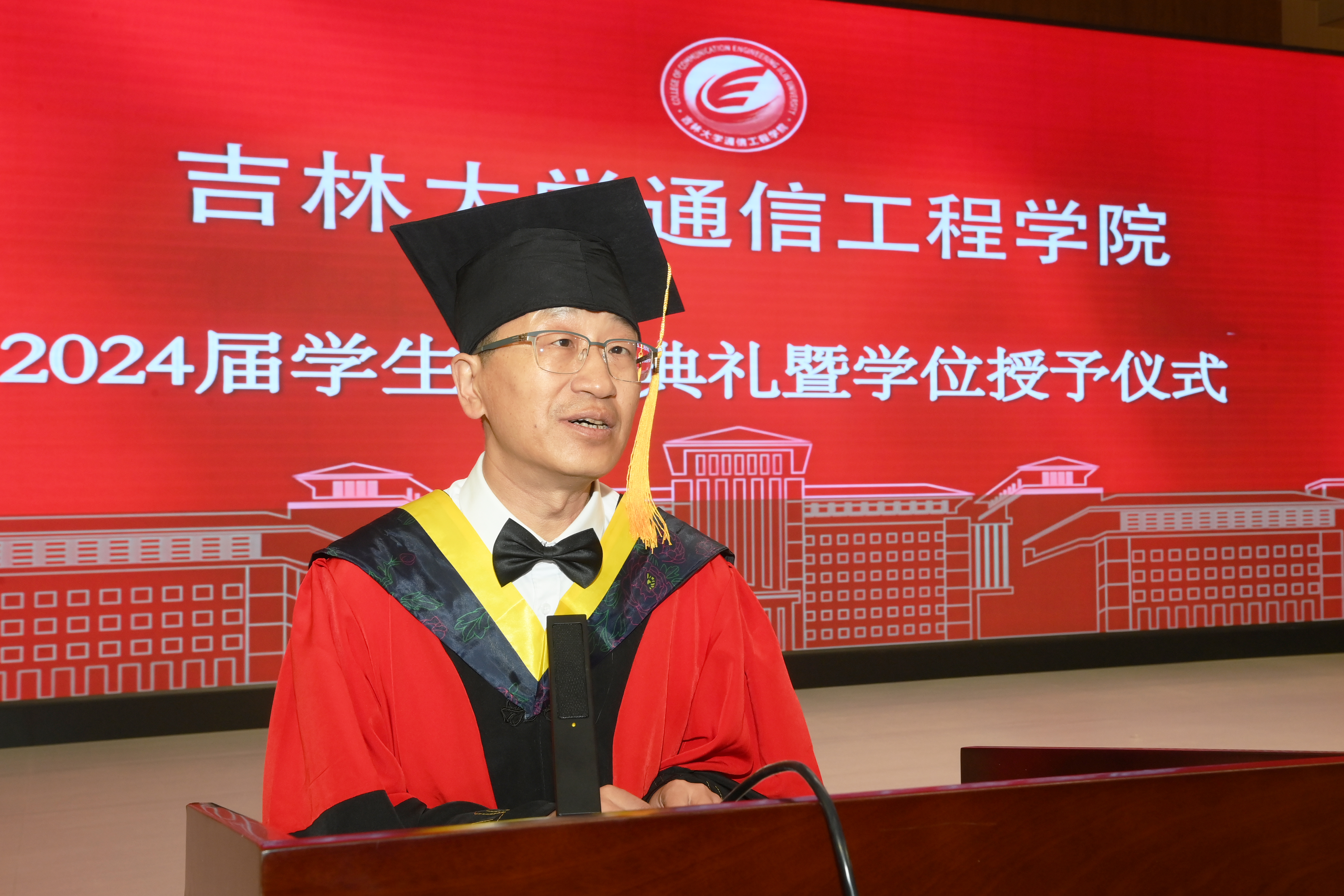 在典礼开始前首先播放了学院精心制作的毕业纪念短片,随后在庄严的国歌声中毕业典礼正式开始。首先副院长李新波宣读了2024届获得学士学位的毕业生名单。副院长燕学智宣读2024届获得硕士学位和博士学位的毕业生名单。院党委书记董宏志老师宣读优秀毕业生名单。