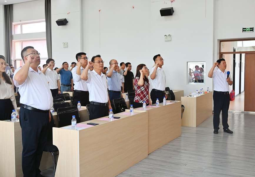 在师生们激昂的国歌声中,本次活动拉开帷幕。首先,副院长胡封晔同志带领与会党员重温入党誓词。新老党员面对鲜红的党旗,庄严地举起右拳宣誓,声音铿锵而豪迈。随后党委副书记兼副院长柴华同志宣读了“楼凤网