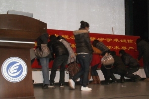 研究生恪守学术道德宣誓仪式”及现场签名活动。全体研究生神情肃穆,用整齐嘹亮的声音宣读了崇尚道德、敬畏学术的庄严誓词,并纷纷登台把自己的名字签写在誓言板上,这把整个大会的气氛推向了高潮。本次大会也是楼凤网
