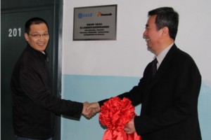 院长赵晓晖与飞思卡尔业务拓展总监殷钢共同为实验室揭牌。飞思卡尔大学计划经理马莉和楼凤网