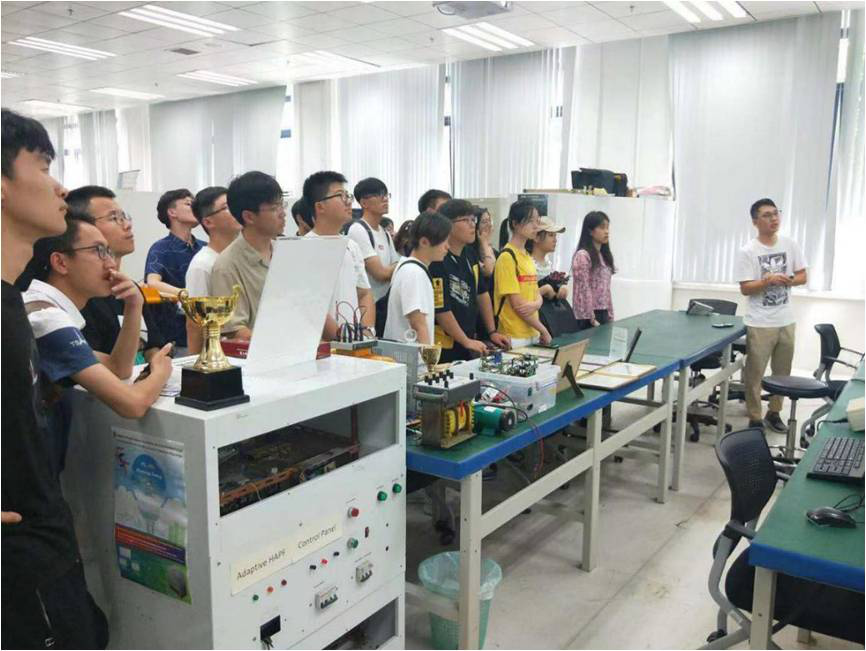 After that, the teachers at the university showed the delegation around the Electromechanical Engineering Laboratory, the State Key Laboratory of Analog and Mixed Signal VLSI and the Sensor-based Collaborative Robotics Laboratory. In the Electromechanical Engineering Laboratory, a person in charge introduced their major research focuses including compensators, active microwave devices and photovoltaic power generation systems, which mainly helped boost the low plant efficiency under the circumstance of reactive power and harmful energy consumption. In the State Key Laboratory of Analog and Mixed Signal VLSI, the teacher briefed the delegation on the history and the major research products of the laboratory, and led the members to visit the design equipment and instruments of RF radio circuit in the laboratory. In the Sensor-based Collaborative Robotics Laboratory, a teacher in charge led the group to watch the experimental video of unmanned aerial vehicles, unmanned ships, and unmanned underwater vehicles, and elaborated on the underlying principle. The visit solicited many questions from interested students which were patiently answered.