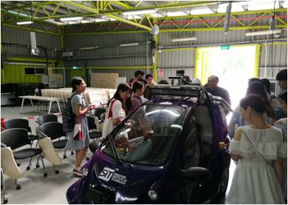 Professor Pei also guided the delegation to visit four main laboratories. The radio frequency and electronics laboratory, students saw demonstration of circuit board architecture from onsite researchers, and took part in antenna shielding experiments; in the traffic system laboratory, students walked through traffic simulations; in the unmanned driving laboratory, many students for the first time, came to close contact with self-driving vehicles; the embedded systems lab is most familiar to our students, and they were able to see how other laboratories applied single-chip technology in to practical research.