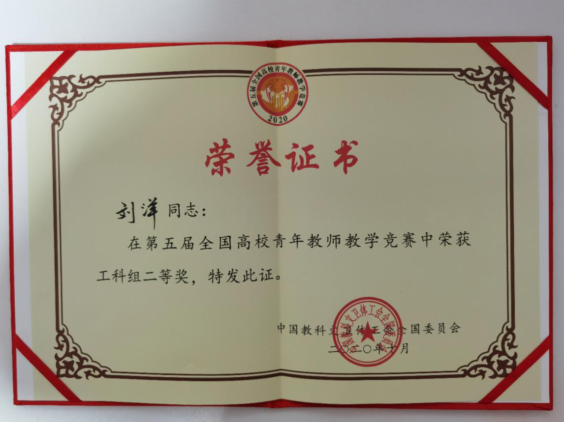 Liu Yang, Teacher of College of Communications Engineering, Awarded 2nd Prize (Engineering) in 5th National Teaching Competition for Young University Teachers
