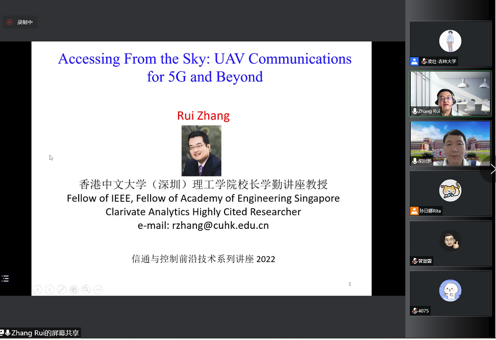 The Second Lecture of the Lecture Series on Cutting-edge Technologies in Information Communication and Control, Professor Rui Zhang’s Online Academic Exchange Meeting Was Successfully Held