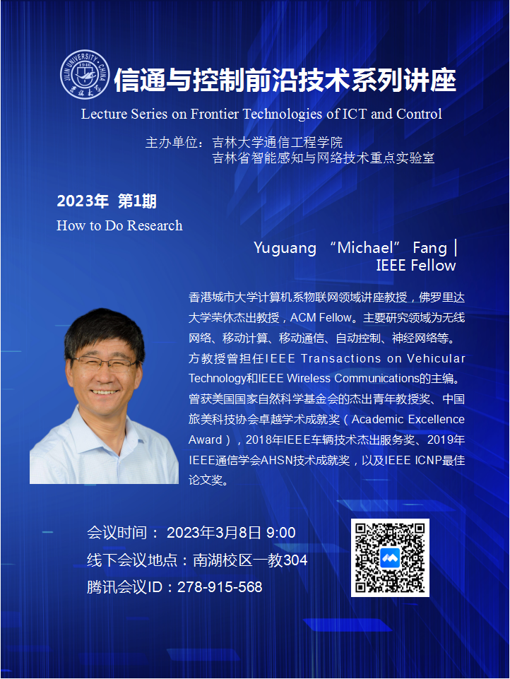 Notice on the First Series of Lectures on Frontier Technologies in ICT and Control in 2023:Professor Yuguang Fang's Online Workshop
