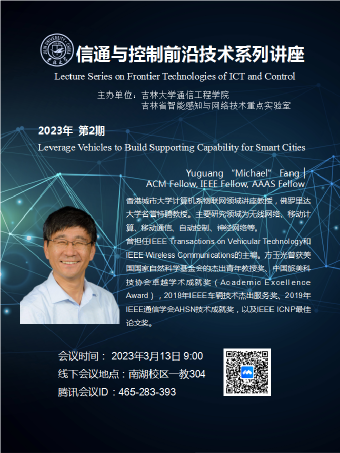 Notice on the Second Series of Lectures on Frontier Technologies in ICT and Control in 2023:Professor Yuguang Fang's Online Workshop