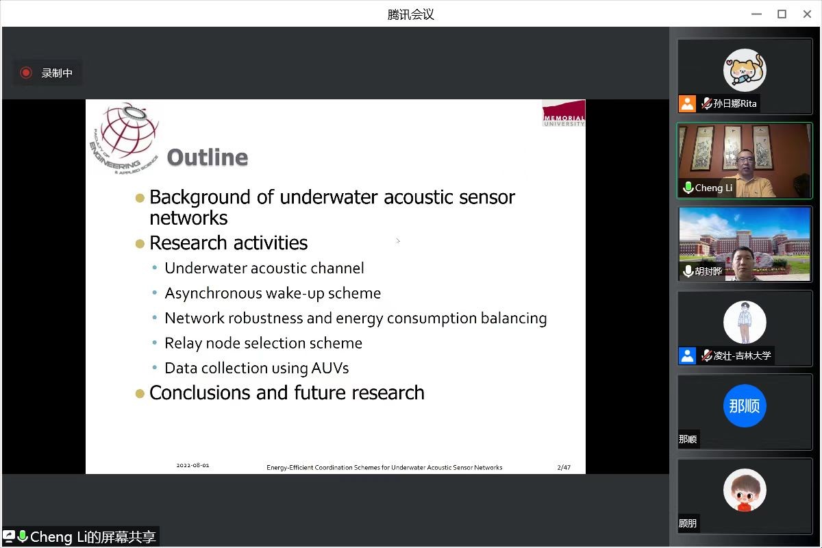 师生开展题为“Energy-Efficient Coordination Schemes for Underwater Acoustics Networks”线上学术交流活动。交流会由胡封晔教授主持。