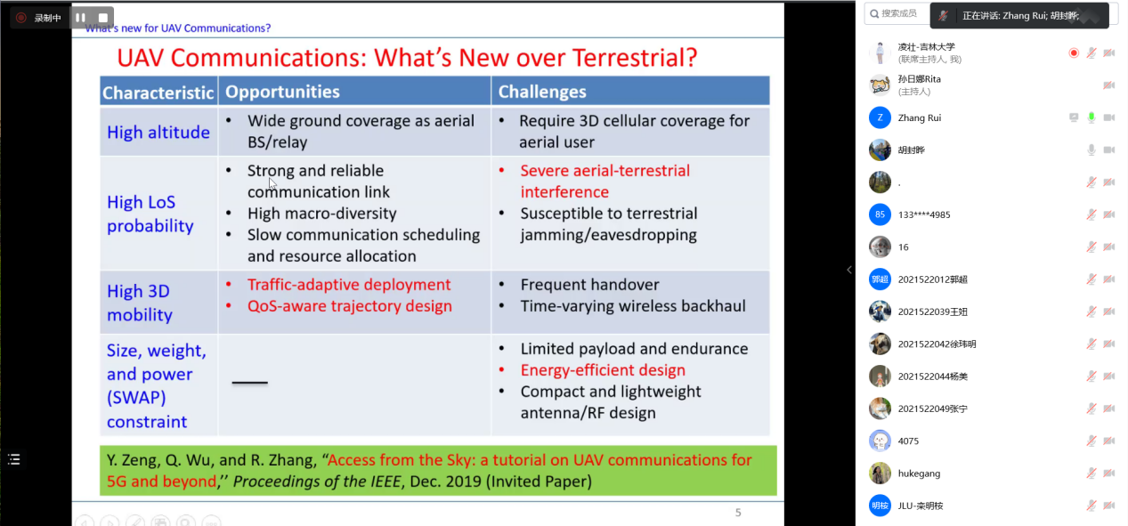 师生就“Accessing From the Sky: UAV Communications for 5G and Beyond”课题开展线上学术交流活动。交流会由胡封晔教授主持,学院师生近百人参加了本次讲座。