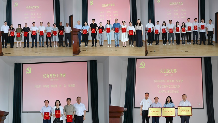 学院党委委员为受到表彰的集体和个人颁发奖牌和荣誉证书。新党员代表、优秀学生党员代表、优秀教师党员代表、先进党支部代表先后上台发言,他们结合自身学习和工作,畅谈新时代党员的责任与担当。他们纷纷表示要化荣誉为动力,努力工作,无私奉献,为学院又好又快发展做出新的贡献。