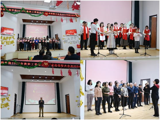 在南湖校区图书馆四楼报告厅成功举行2023年荣休仪式、总结表彰大会暨2024新年联欢会。学院全体领导班子成员、南湖校区事务办领导、全体教职工、2023年荣休教职工共计160余人参加。会议由副院长时玉平主持。