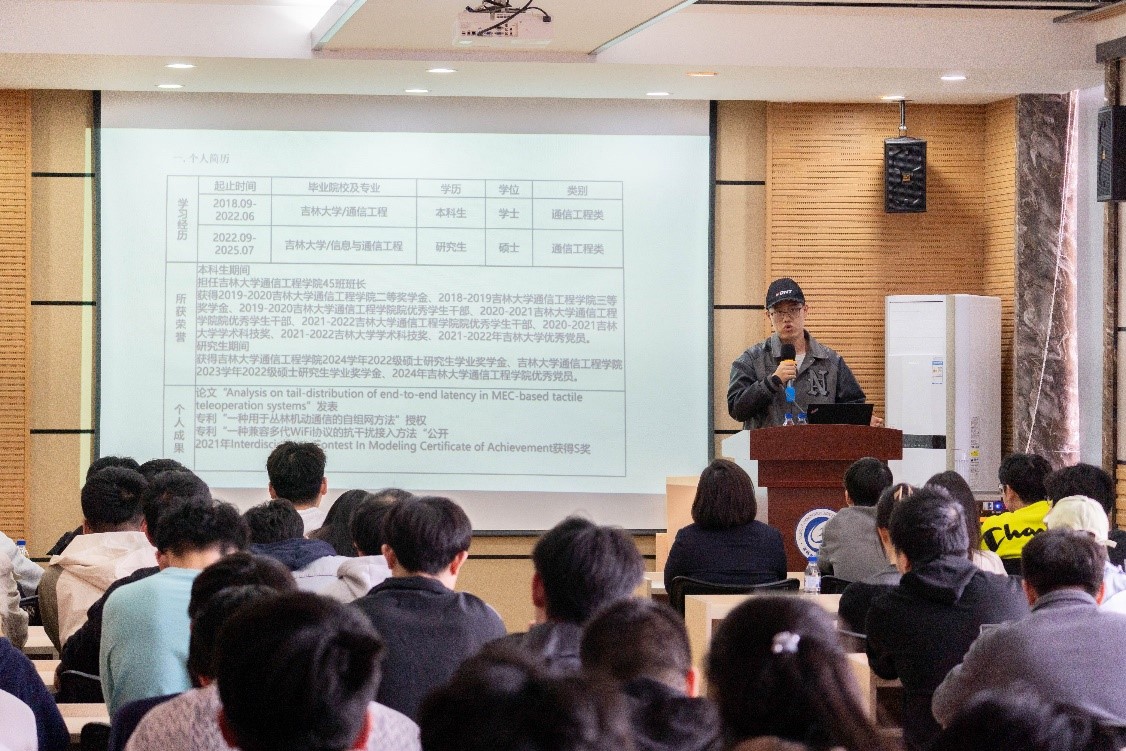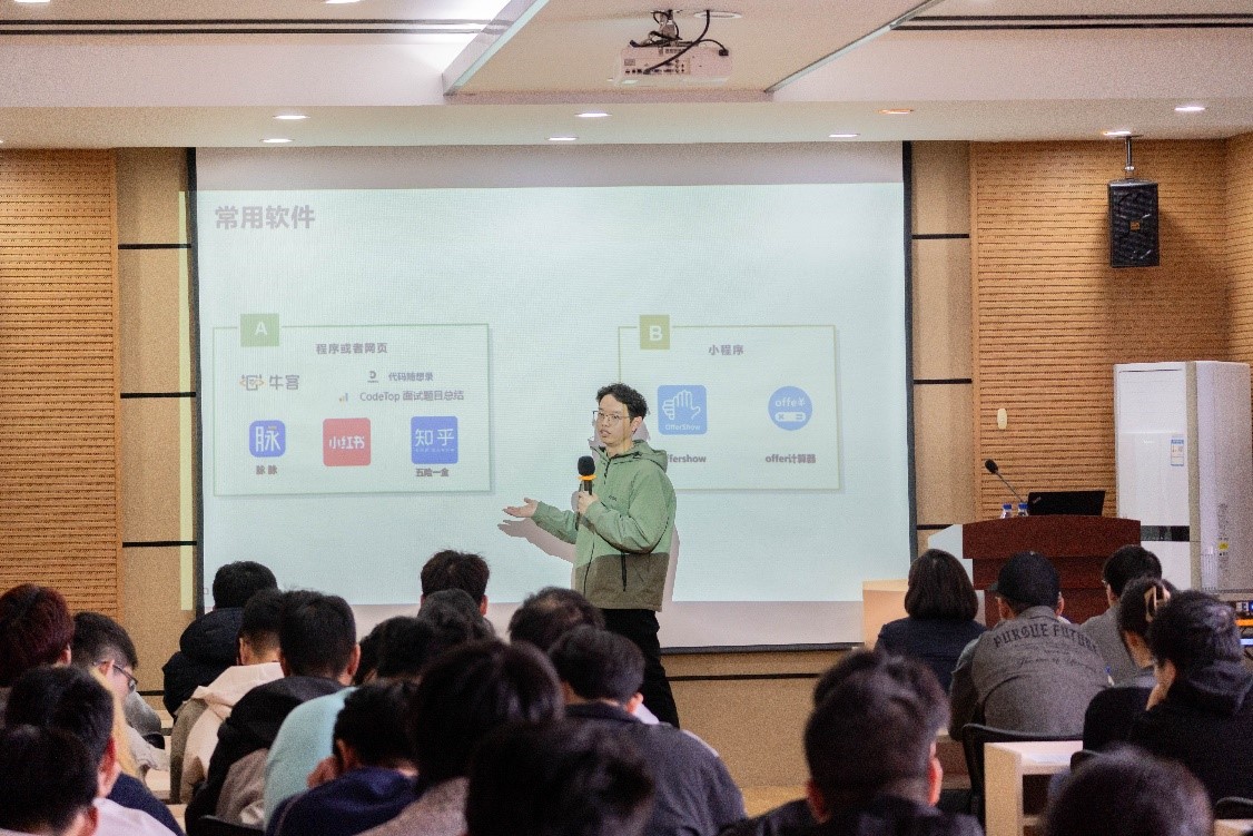 会上,陈同学围绕华为求职展开分享。他系统阐述了华为的求职流程、笔试面试要点与考题范围,以自身及室友实例剖析面试技巧,提醒同学们要依据应聘部门针对性学习相关知识,提升自身竞争力。