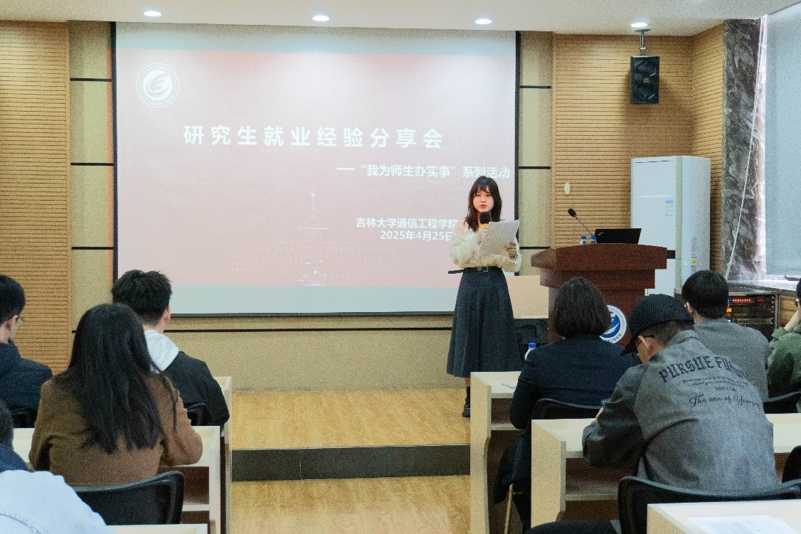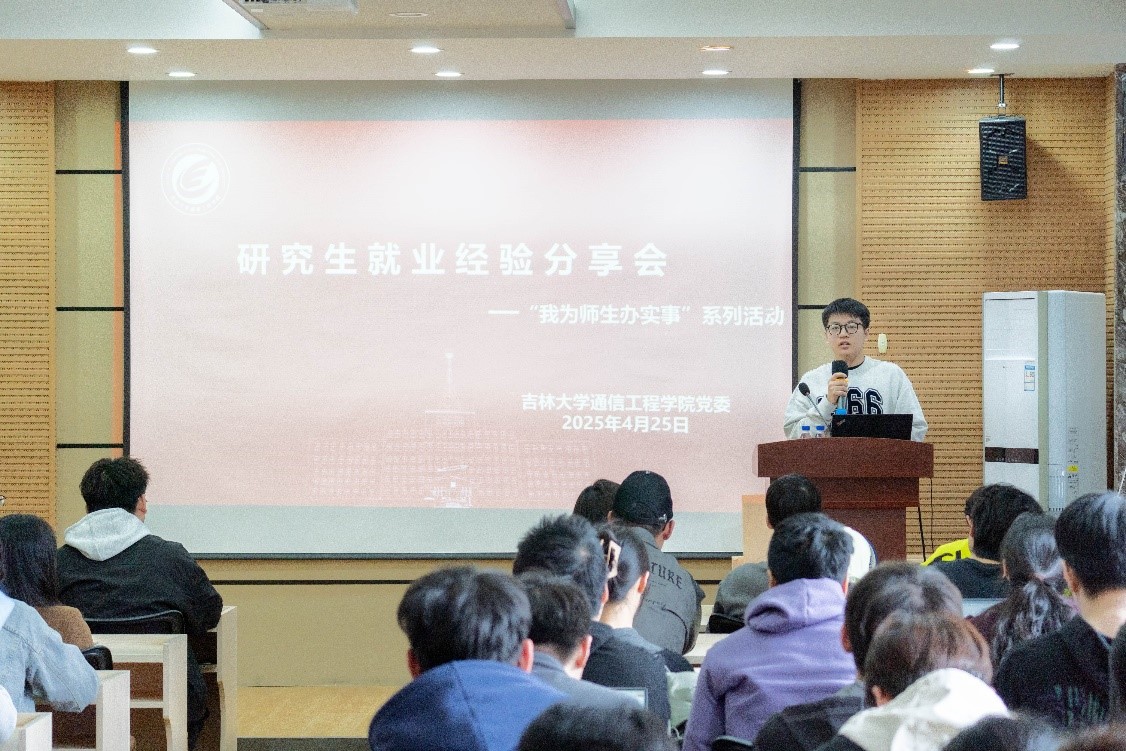 “我为师生办实事”相关工作安排,帮助研究生掌握就业动态,汲取成功求职经验,提升就业竞争力, 2025年4月25日,学院在南湖校区一教304室举办了研究生就业经验分享会。本次活动邀请了来自华为、一汽、国家电网、百度、光机所和考公等领域的优秀毕业生作为嘉宾,分享行业求职经验,畅谈求职心路历程。2023级和2024级研究生参加了此次活动,活动由学院研究生会执行主席徐婷主持。