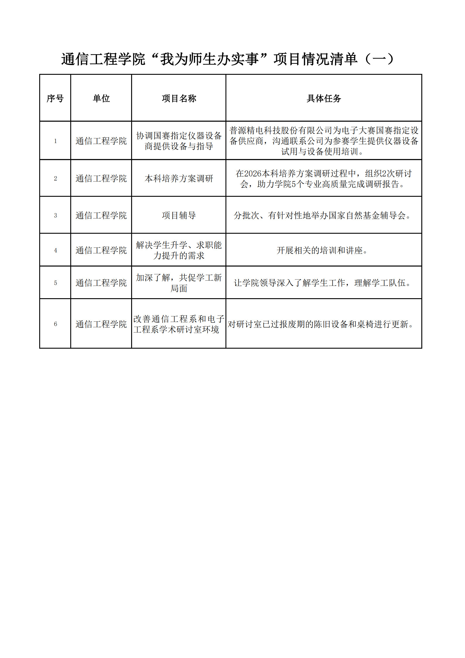 楼凤网 “我为师生办实事”项目情况清单
